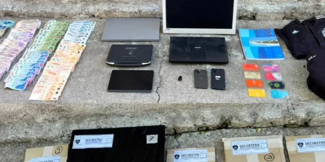 Durante los allanamientos, los investigadores secuestraron una gran cantidad de elementos considerados clave para la causa: 25 teléfonos celulares, computadoras, notebooks, pendrives, tarjetas bancarias de débito y crédito, tarjetas SIM, blísteres de chips sin uso, documentación y cuadernos con anotaciones, según informó la Agencia Noticias Argentinas.