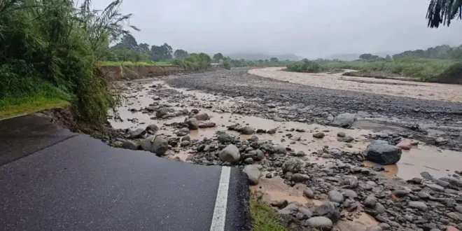 Según se constató durante un recorrido por la zona, el caudal del río alcanzó un nivel inédito como consecuencia de la acumulación de lluvias en áreas de montaña y un segundo golpe de agua durante la madrugada, que terminó de socavar la base del camino. La violencia de la corriente arrancó el pavimento y lo arrastró cauce abajo, dejando sectores donde ya no queda rastro alguno del asfalto.