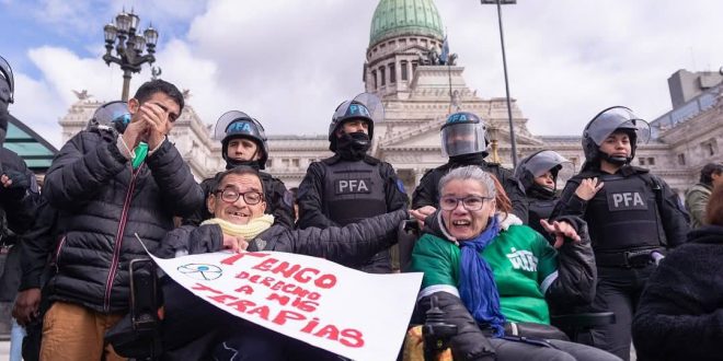 Decenas de efectivos avanzaron contra los manifestantes que reclaman contra el veto a los aumentos en discapacidad y se dan escenas de violencia en la Plaza del Congreso. La marcha de efectivos de seguridad generaron indignación por la presencia de personas con distintas discapacidades, tanto psicológicas como físicas.
