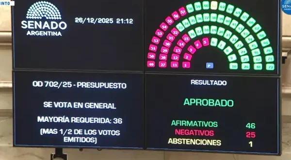 El Gobierno nacional consiguió este martes uno de los principales objetivos de su agenda legislativa con la aprobación del Presupuesto 2026, tras una extensa sesión de más de ocho horas de debate en el Senado. La iniciativa fue sancionada en general con 46 votos afirmativos, 25 negativos y una abstención, quedando a solo dos votos de alcanzar los dos tercios, en una jornada marcada por la asistencia perfecta y un fuerte impacto político.